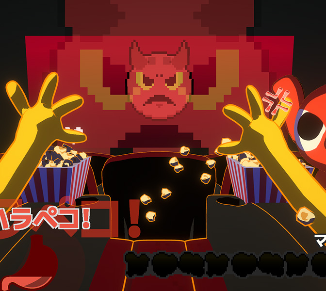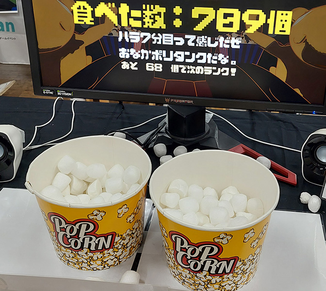 バレないように隣の人のポップコーンを盗み食いしてお腹を満たすゲームです。