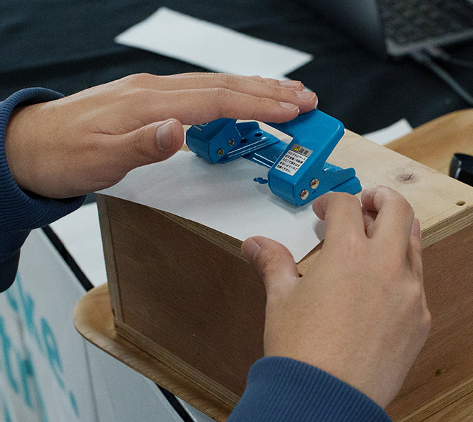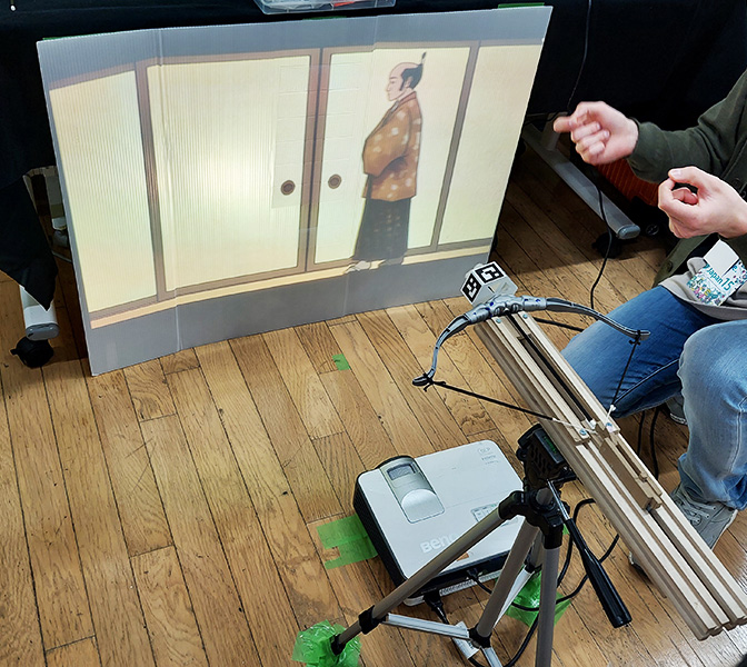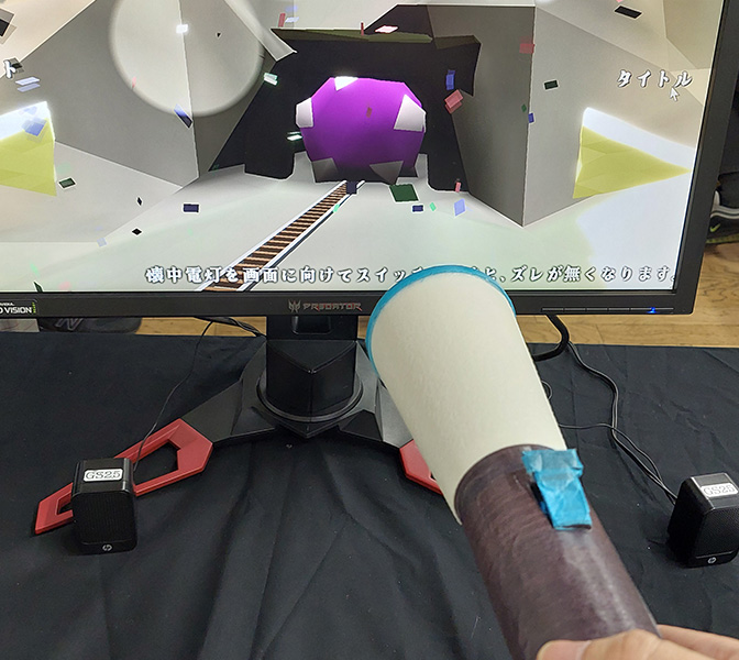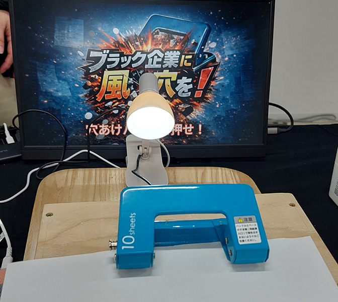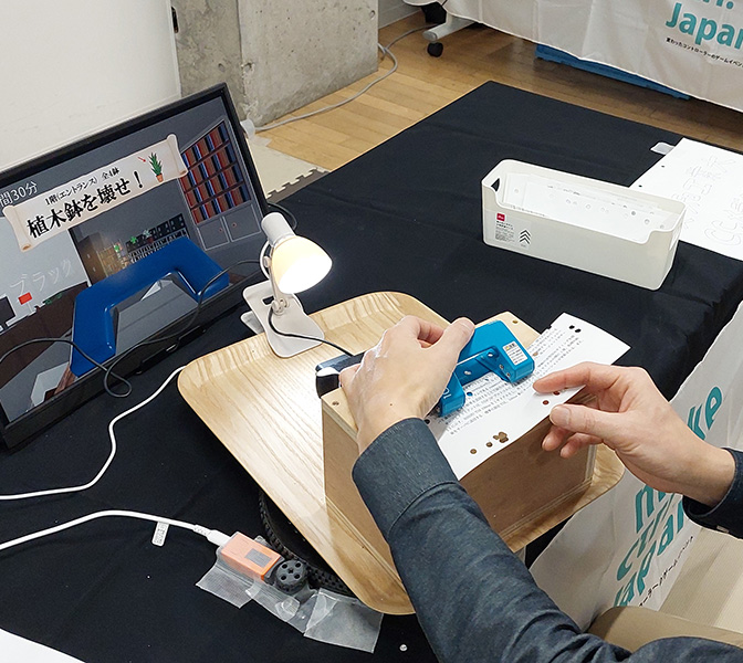 穴あけパンチをコントローラとしたゲーム。実際に紙に穴を開けることで弾を発射する。