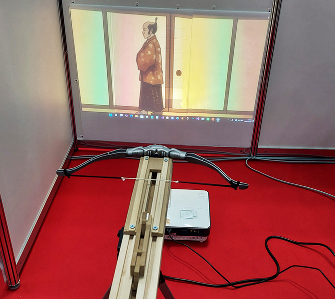 バリスタ砲台で矢文を飛ばし、殿様に報告をするゲーム。