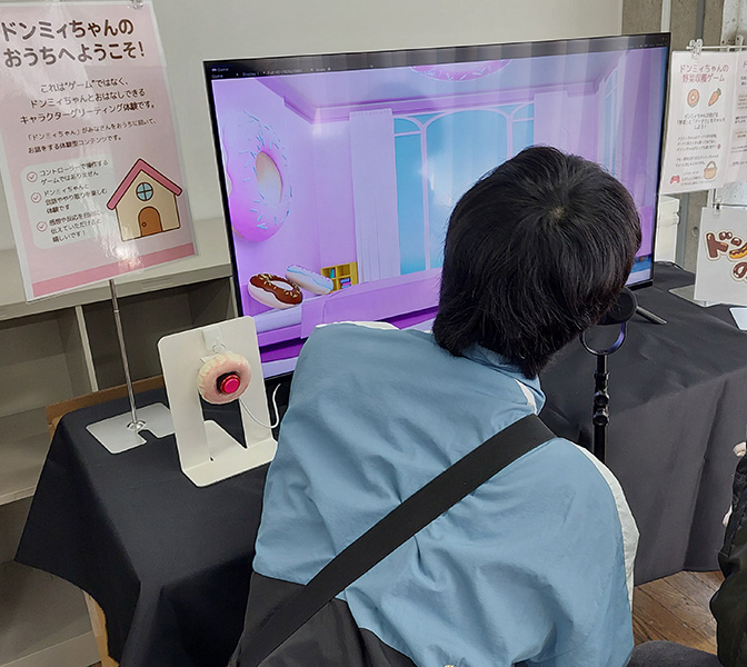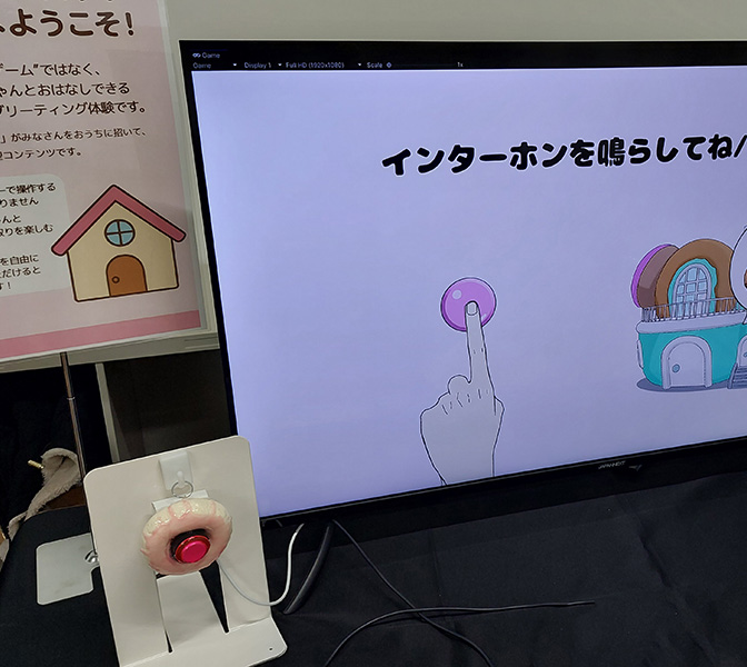 バーチャルキャラクターのドンミィちゃんと話ながらゲームをしよう。インターフォン型デバイス。