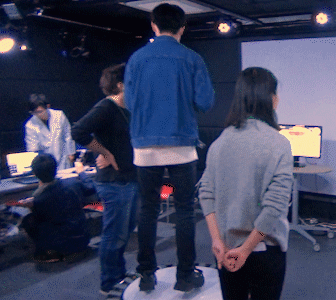 トランポリンの上に乗って体の動きでキャラクタを操作します.