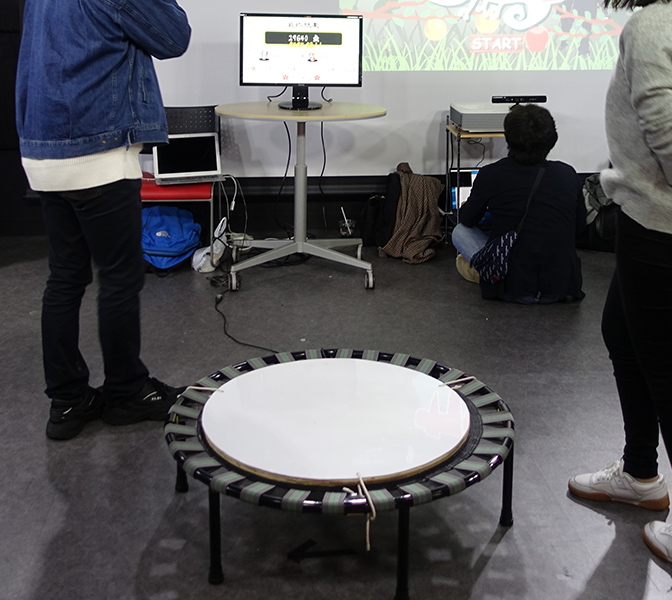 トランポリンをインタフェースとして用いた体感型ゲーム.