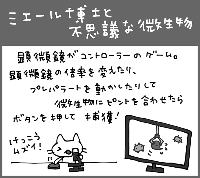 顕微鏡型コントローラを使って遊ぶ、微生物発見ゲームです。