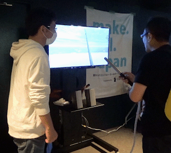 トランポリンの上に乗って体の動きでキャラクタを操作します.