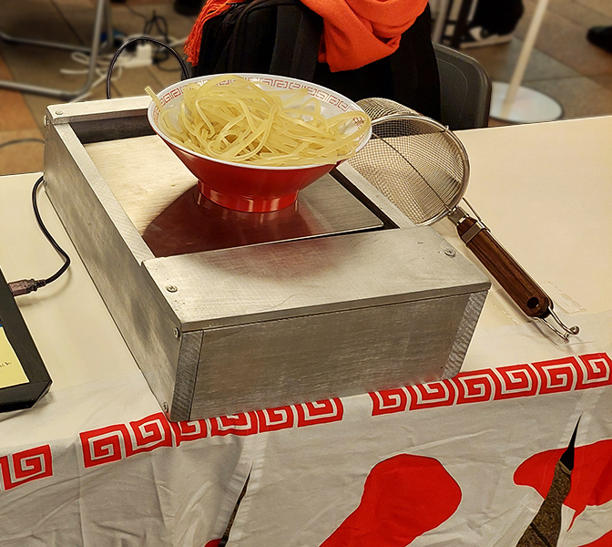多数のメディアに紹介された、ラーメンの湯切に使う道具「テボ」を使って、