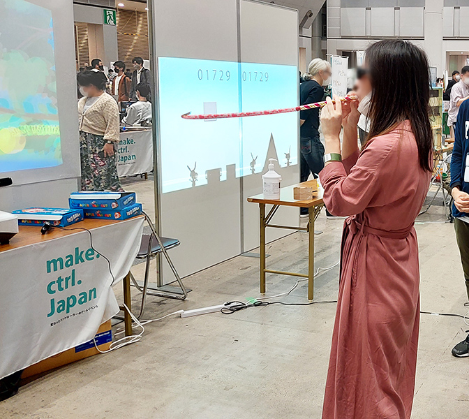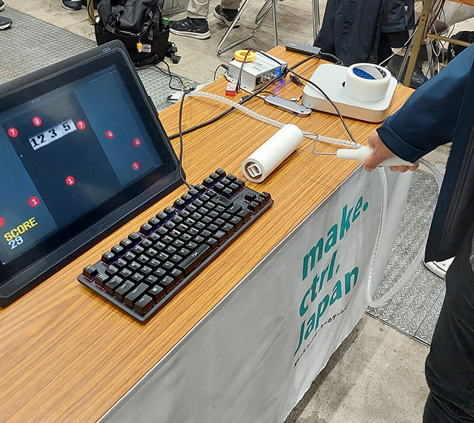 肩にコントローラを装着し、肩を上げる、肩をひねる、肩を回すなどの多様な動きを使って遊ぶことが出来る体験ゲームです。