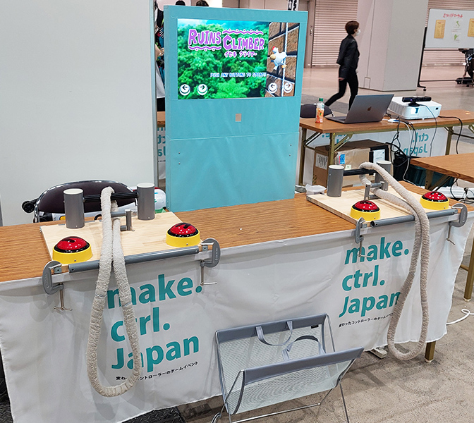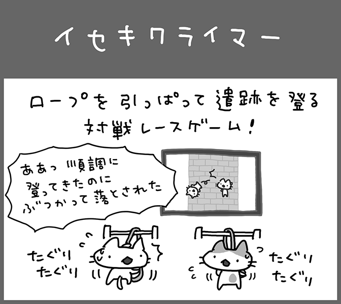 ロープを引っ張って遺跡をのぼる、対戦レースゲームです。