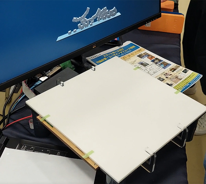 人工大理石を天板に持つキッチンや洗面台をタッチディスプレイ化するデバイスを使います。