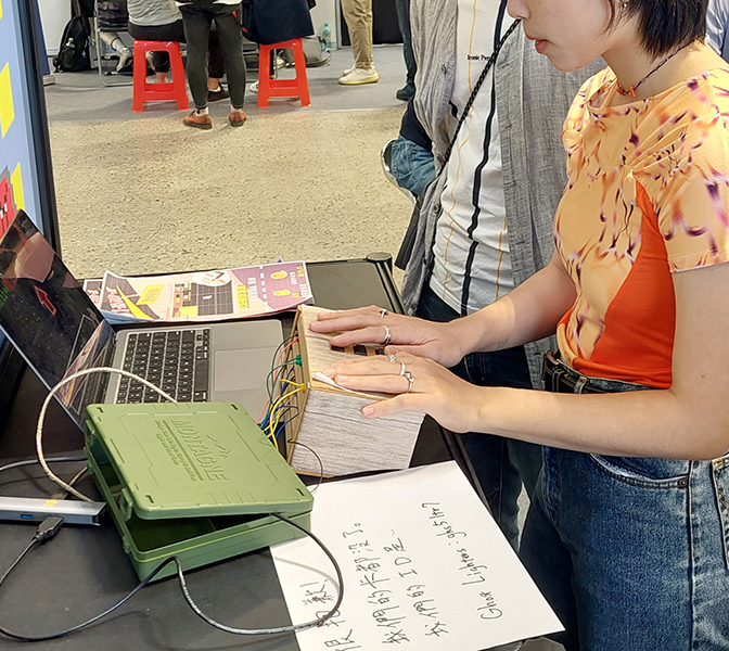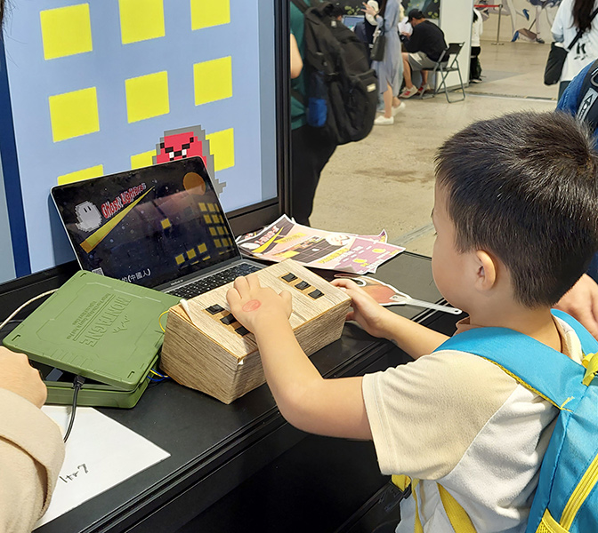 今回は100均材料で作れるスケートボードゲーム、ScratchCatと勝負するアームレスリングゲームを展示する予定です。